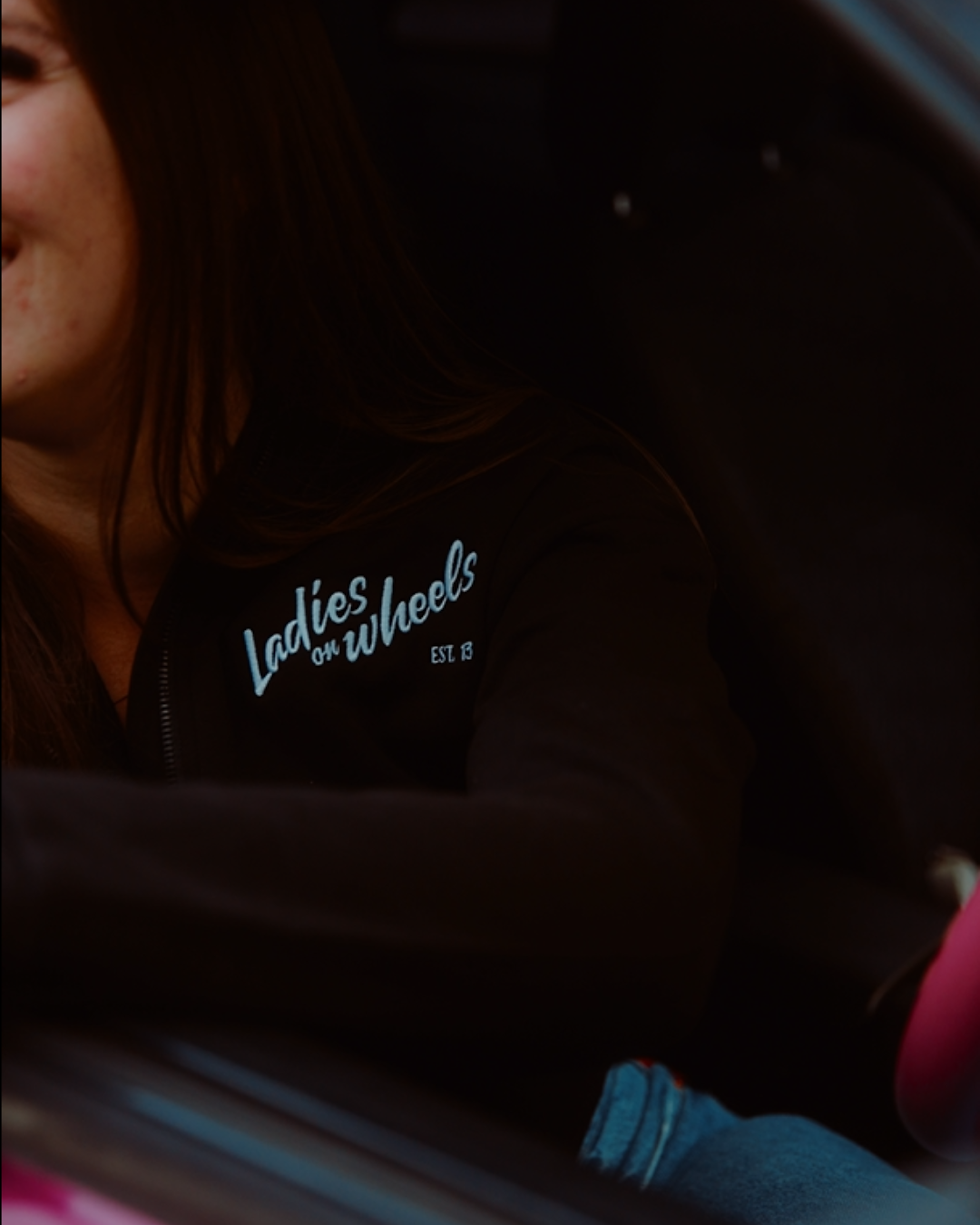 T-shirt manches longues crème avec imprimé Ladies on Wheels sur l’avant et notre slogan a l’arrière.